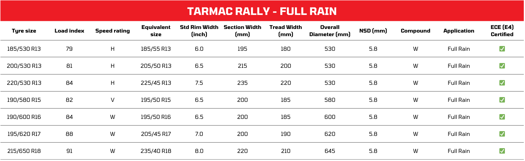 Pneumatika schválená pre cestnú premávku E4. Vhodná pre historické rely a rely VHC. Spĺňa požiadavky pre rallye N2S.